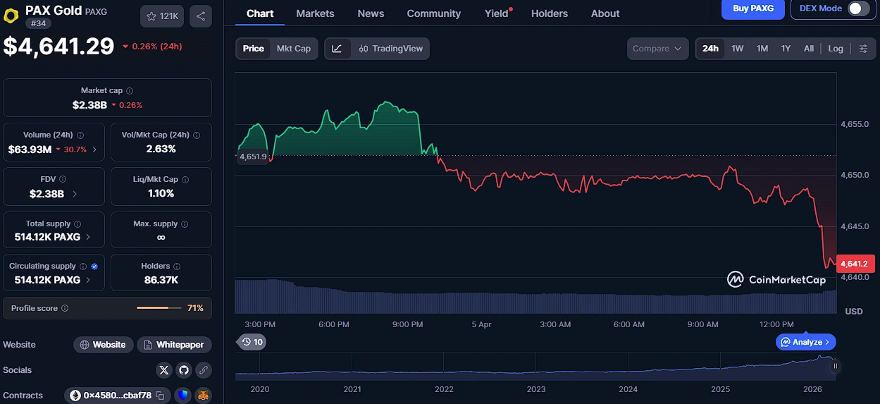 با کاهش فشار خرید طلای دیجیتال، ارزش بازار PAXG نیز با کاهش ۰.۲۶ درصدی به ۲.۳۸ میلیارد دلار رسید.